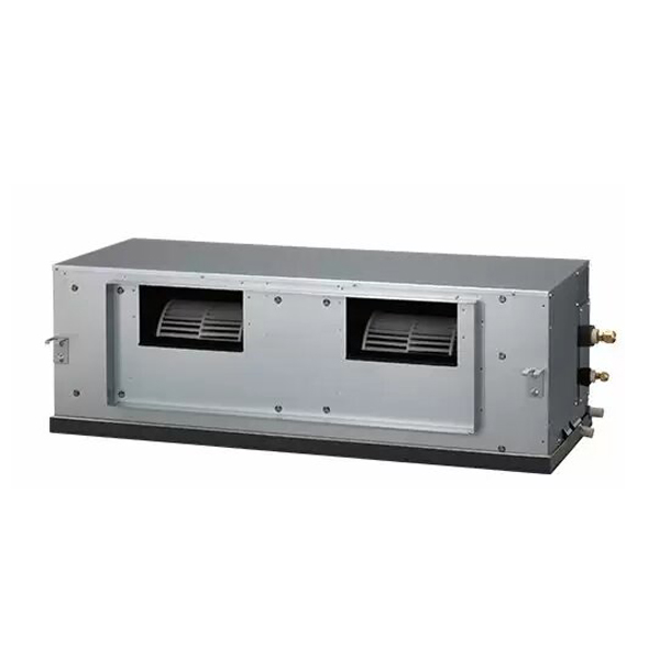 канальная сплит-система, обогрев и охлаждение, мощность охлаждения 15000 Вт / обогрева 18000 Вт, экономичный режим, автоматическое поддержание температуры, автоперезапуск, режим осушения воздуха, подмес свежего воздуха, потребляемая мощность при охлаждении 4700 Вт / обогреве 5150 Вт, управление с пульта, уровень шума внутреннего блока 36 дБ, трехфазное питание