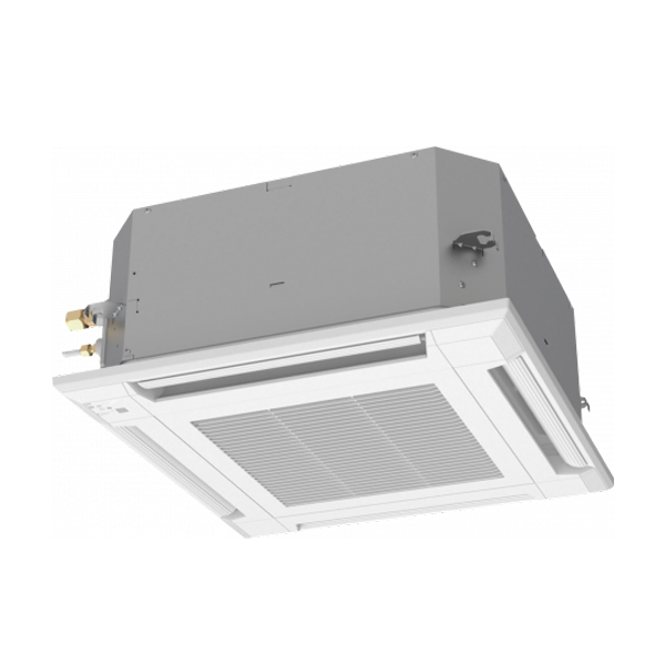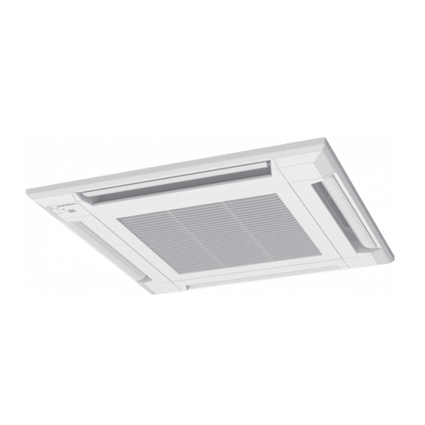 Инверторная кассетная сплит-система, обогрев и охлаждение помещений до 40м², мощность охлаждения 4300 Вт / обогрева 5000 Вт, экономичный режим, авторестарт, режим осушения воздуха, дренажный насос, управление с пульта (опция), уровень шума внутреннего блока 27 дБ